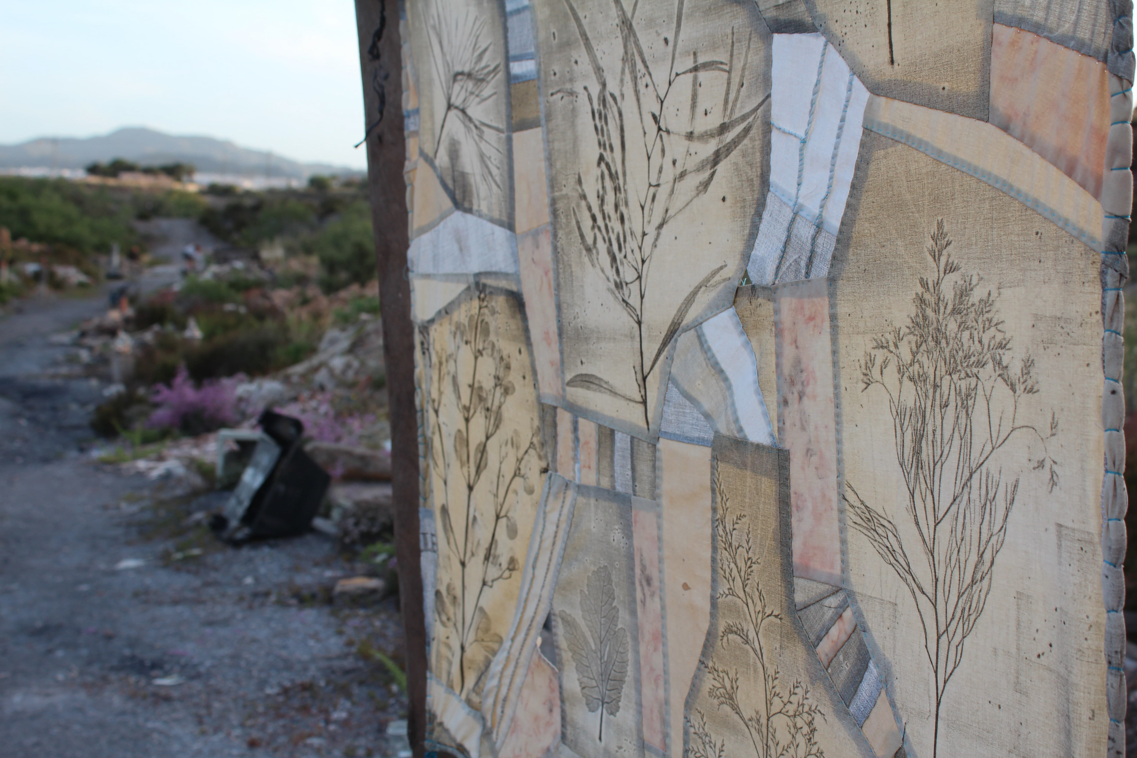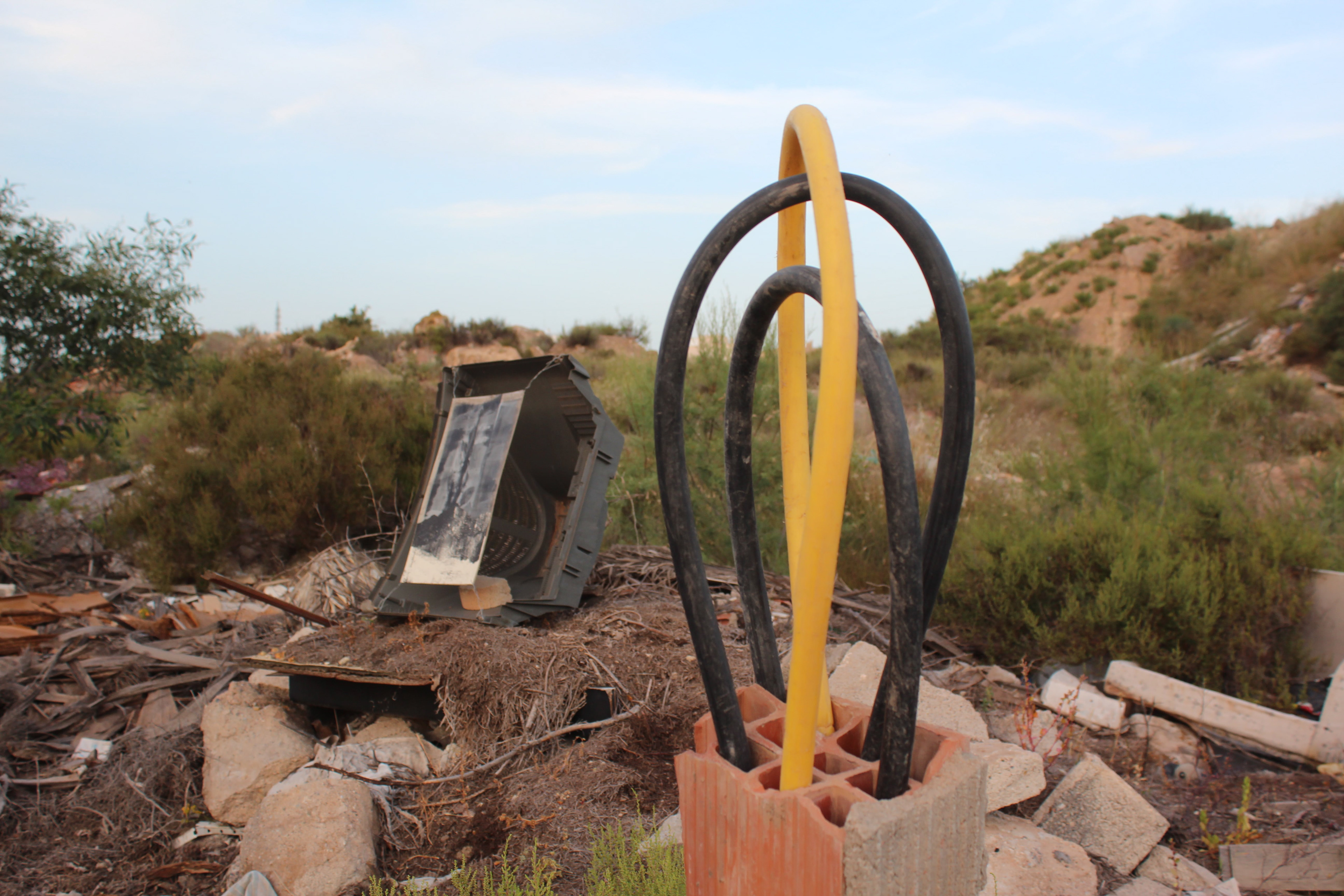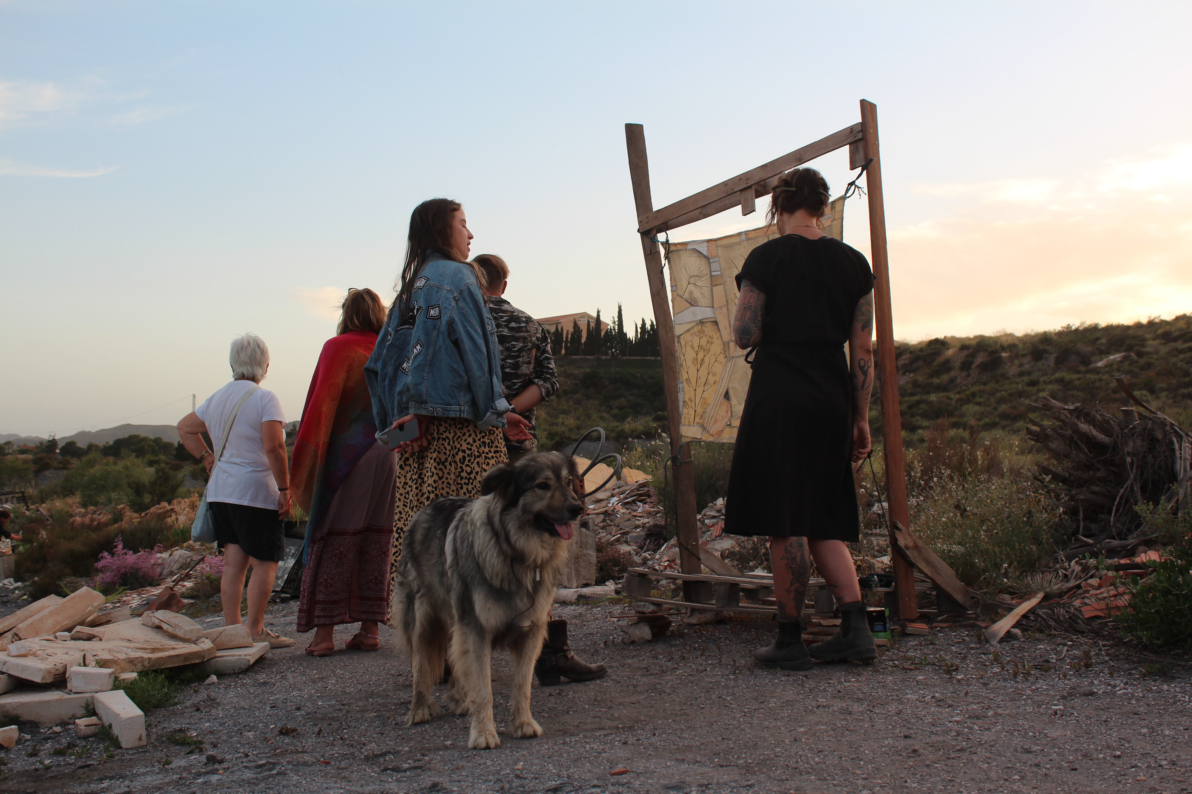 Last Sunday, we had an exhibition in the fields nearby with our artists Anna von Siebenthal and Elizabeth Robinson, and our lovely volunteer Kristina Gajdarikova. Unfortunately, this place is used as a dumping site for greenhouses and construction materials. Yet, Anna found some inspiration and started work on found-material sculptures, which later evolved into an open-air show with contributions of Elizabeth's prints and Kristina's candle installation.