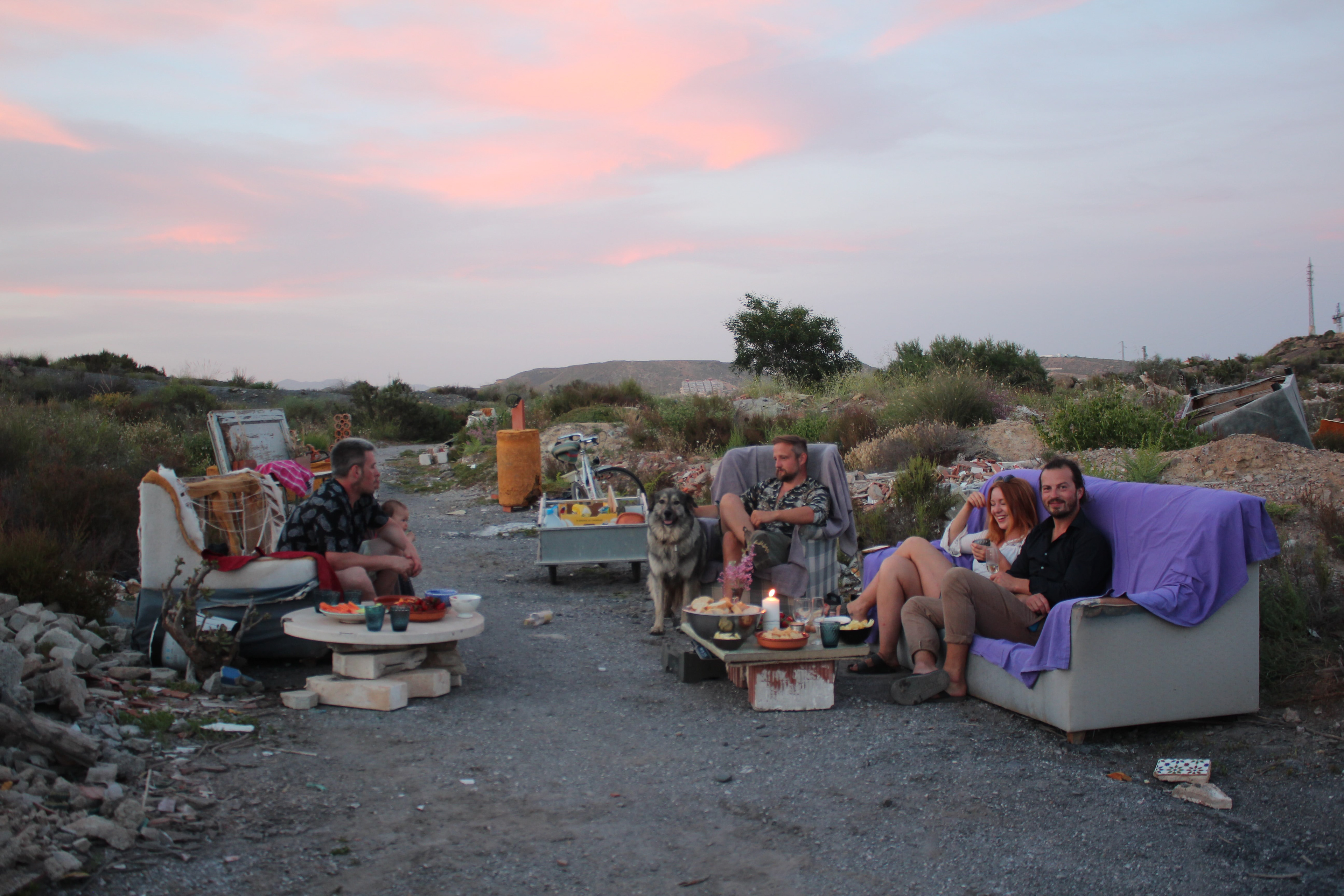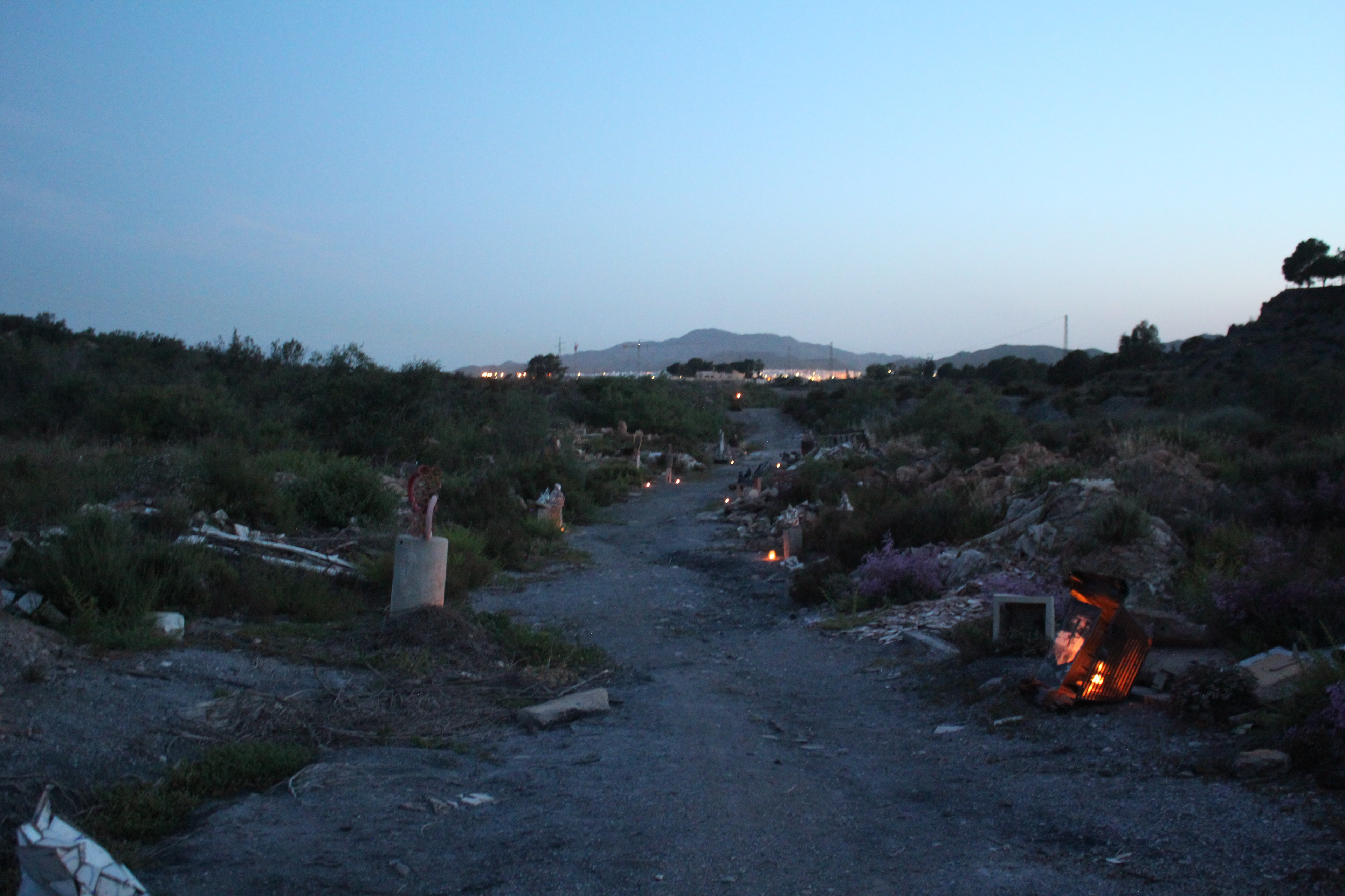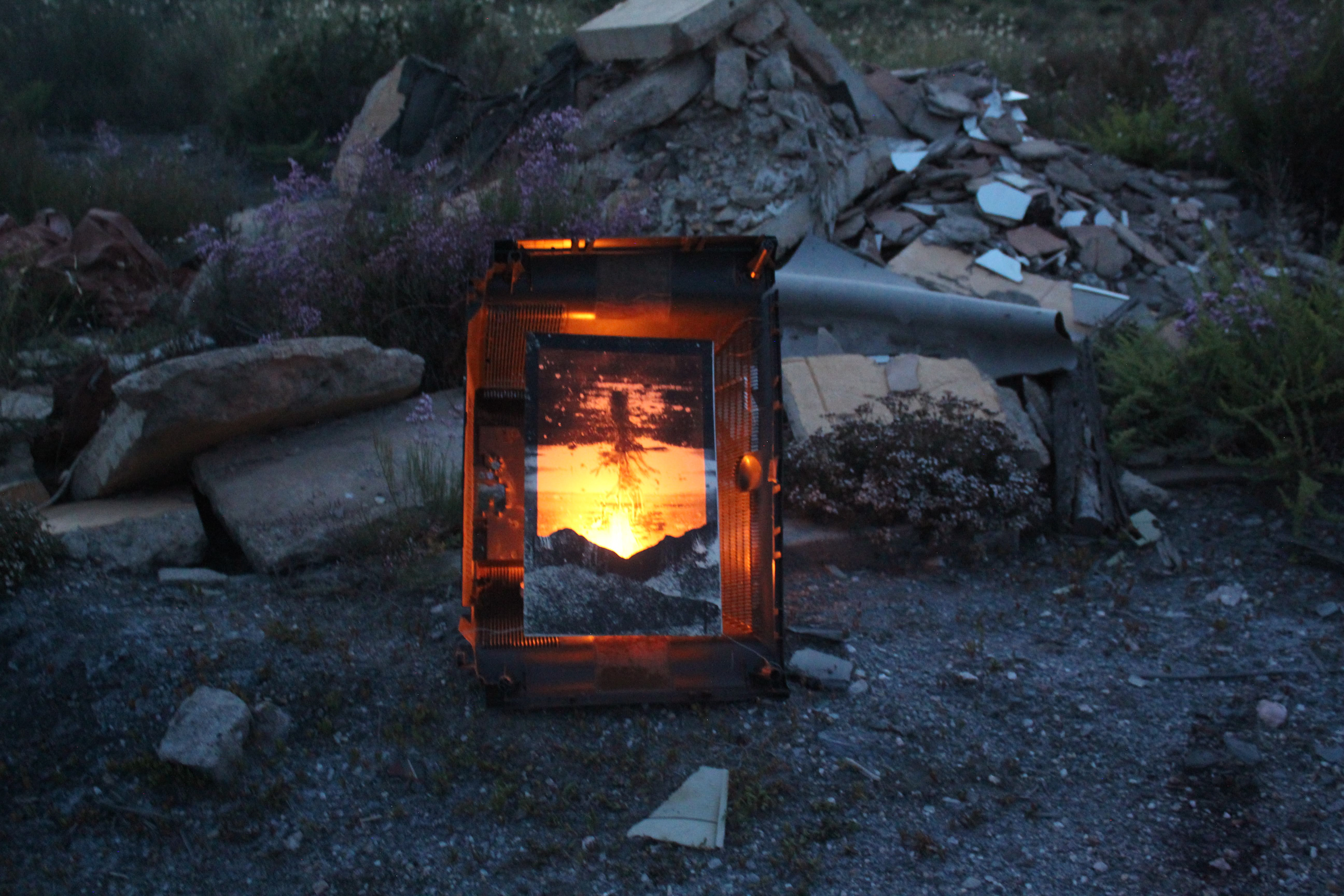 Last Sunday, we had an exhibition in the fields nearby with our artists Anna von Siebenthal and Elizabeth Robinson, and our lovely volunteer Kristina Gajdarikova. Unfortunately, this place is used as a dumping site for greenhouses and construction materials. Yet, Anna found some inspiration and started work on found-material sculptures, which later evolved into an open-air show with contributions of Elizabeth's prints and Kristina's candle installation.