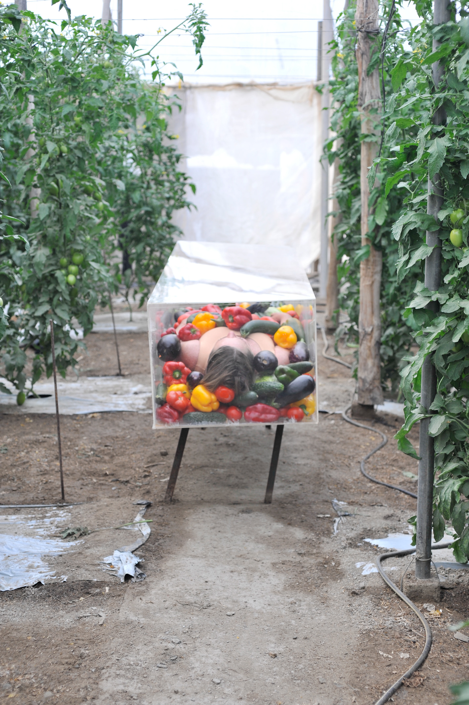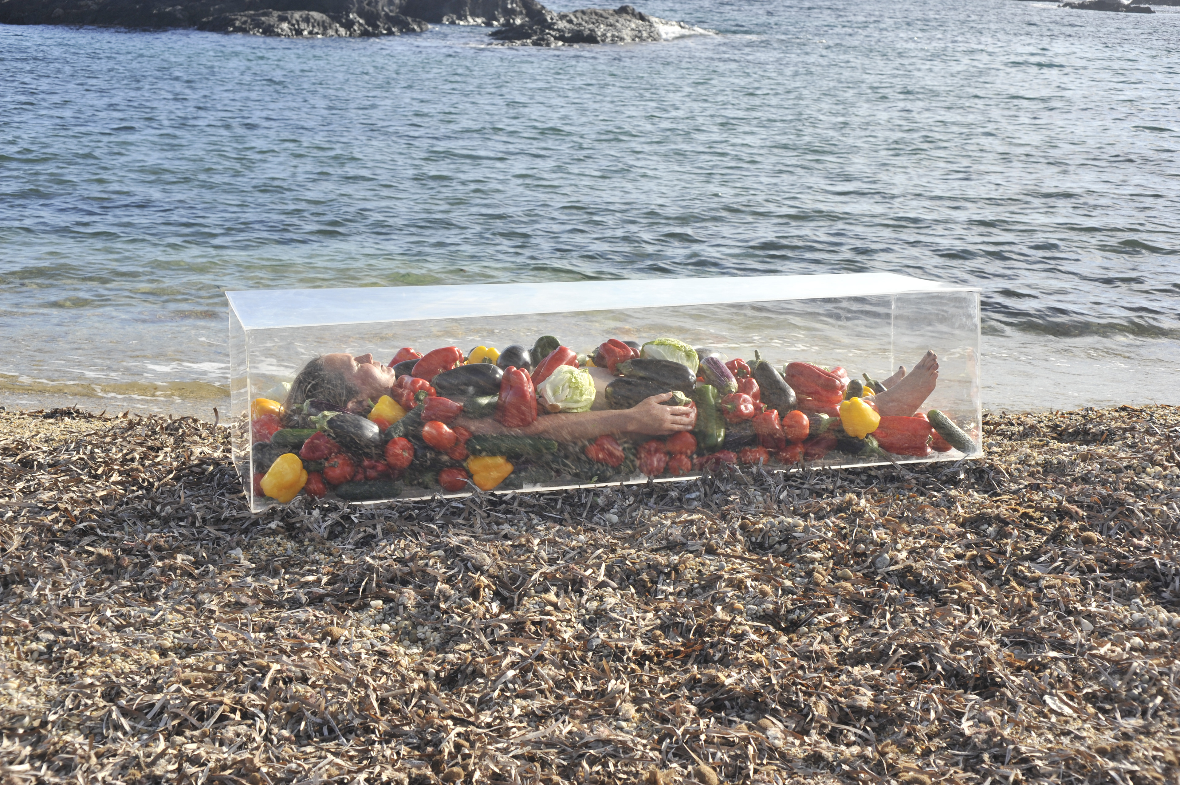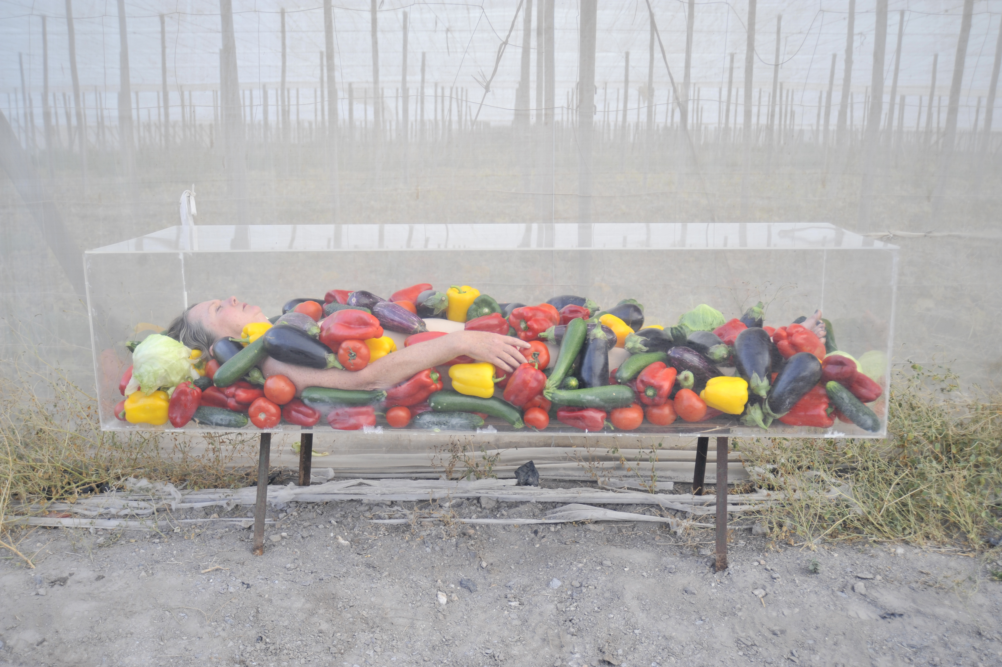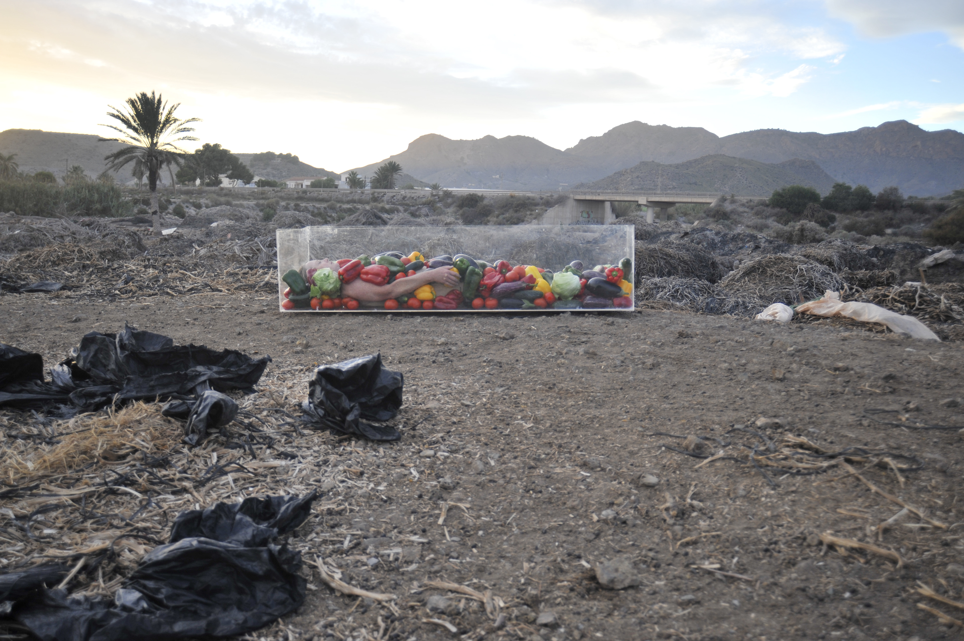 During her stay, she worked on a performance and photo project where she reflected on the local plastic issue. Since 2019, Spiess has been developing her project “Death by Plastic” where she creates a powerful visual commentary on the urgent environmental crisis posed by single-use plastics, urging a paradigm shift in consumer habits and corporate practices to address the pervasive issue of plastic pollution. In her work, Spiess reflects on a particular relationship between plastic and produce, as here in Almeria, the vast majority of the plastic pollution stems from 32,000 hectares of greenhouses which provide a large portion of the produce in Western Europe.