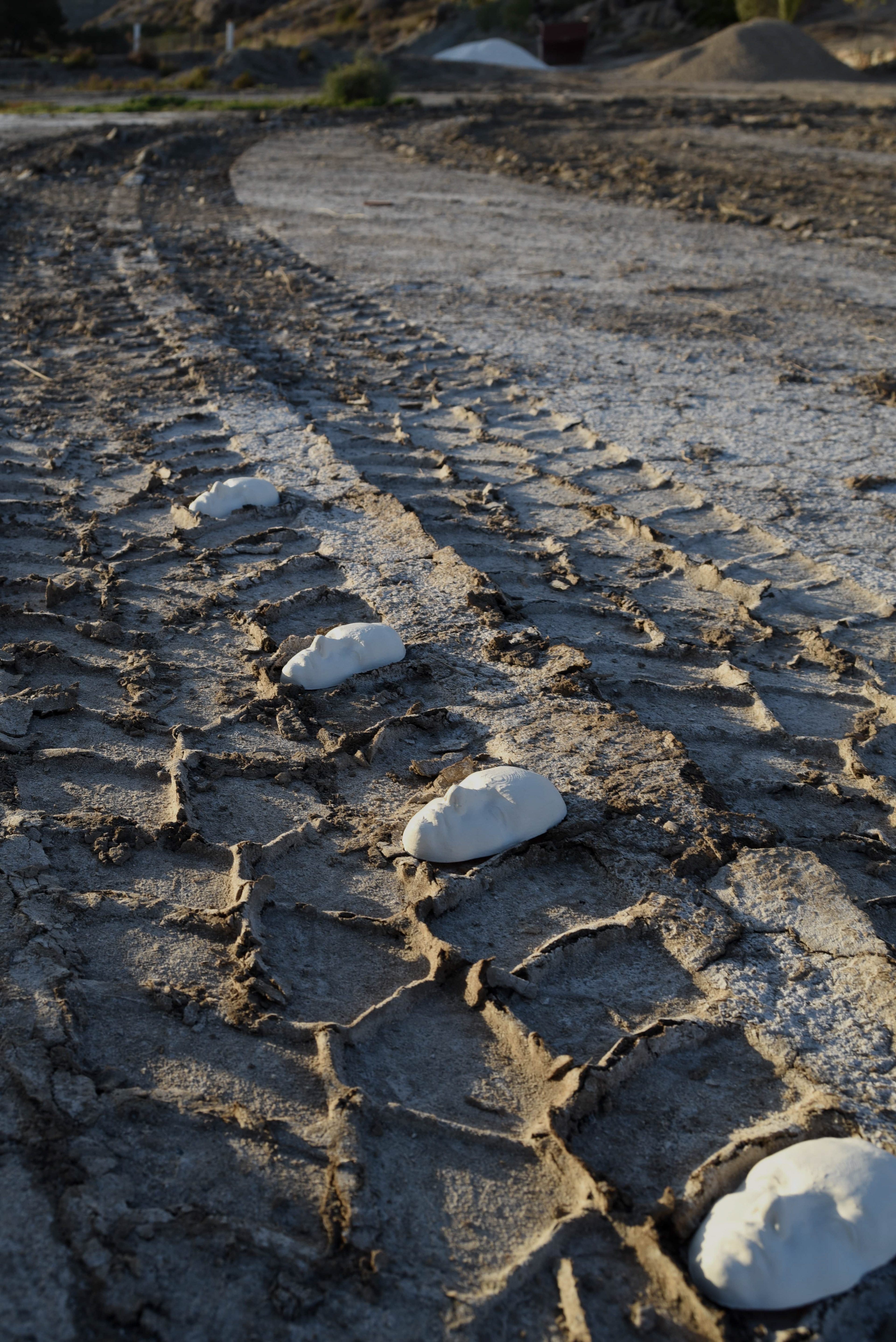“Not a phoenix” is a performative piece where Olga explores her own mortality and the precariousness of life through animal vertebrae she found in the desert. The fragmentation and fragility of the assembled arrangement remind her own congenital structure of having an unstable vertebra in the cervical region and non-standard anatomy of the arteries, making the neck exceptionally vulnerable. Below is a poem by Olga, which accompanies this piece.